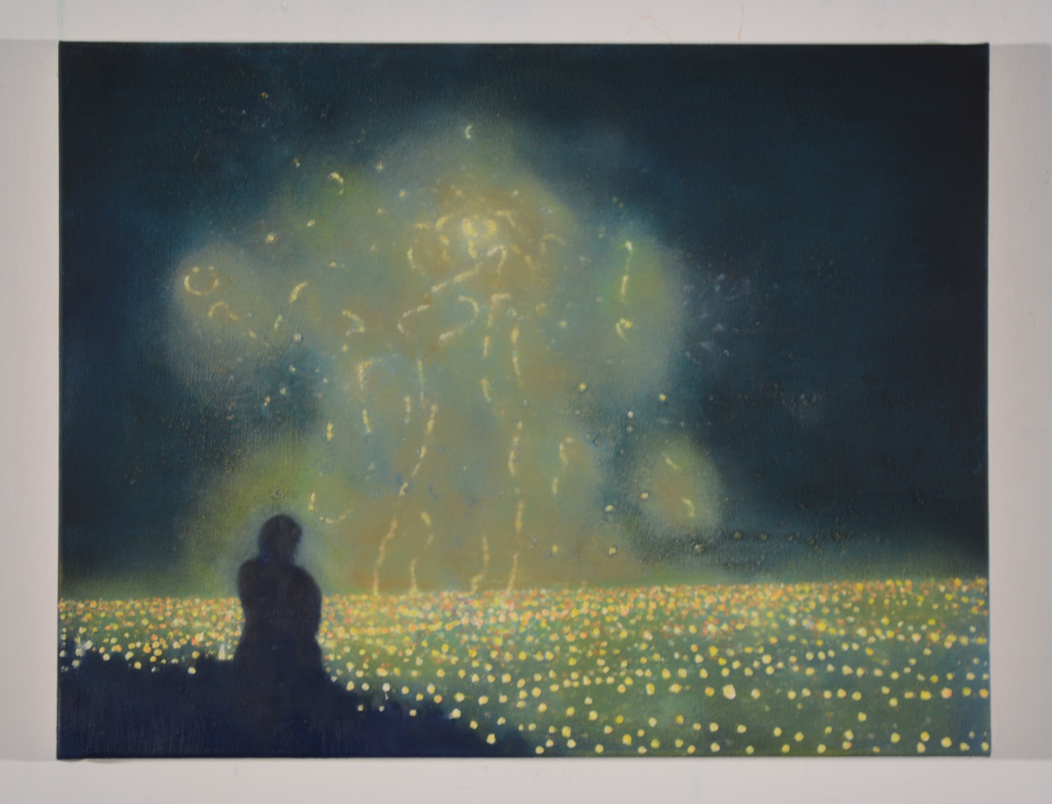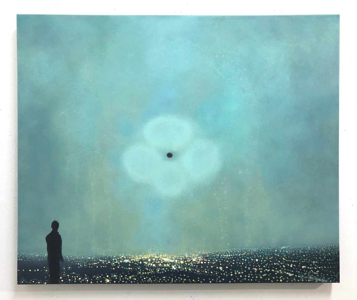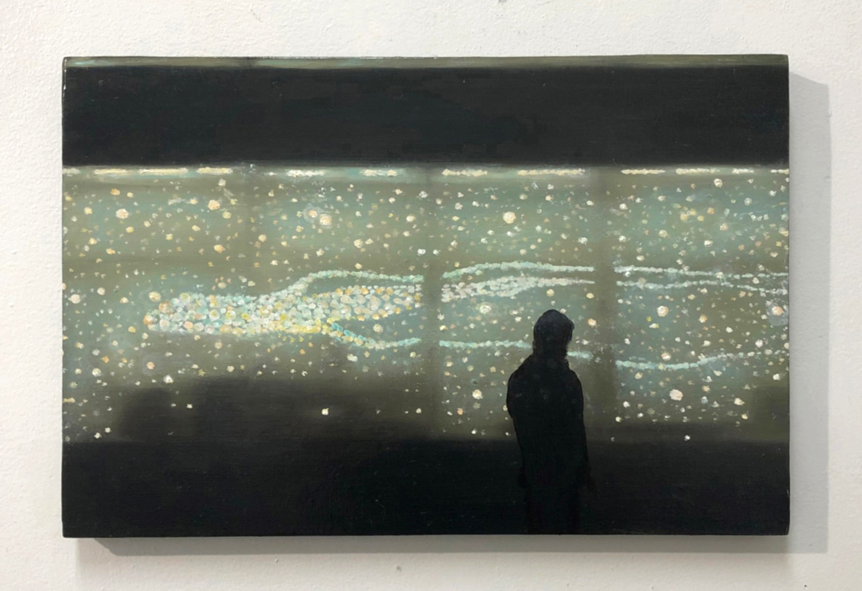 Ekstedt's most recent exhibition, "Observers," delves into the theme of luminous phenomena and our perception of such events. The paintings often feature a silhouetted figure witnessing these phenomena, reminiscent of the Romantic Sublime style found in the works of Tonalists and Casper David Friedrich. However, Ekstedt's paintings offer a contemporary perspective on this theme, suggesting a possible connection between these encounters and the human subconscious.