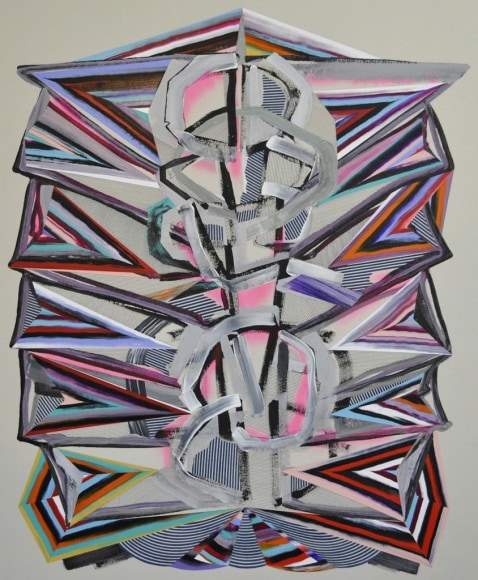 Double Fold, 2013 / Acrylic, marker, ballpoint pen and spray paint on canvas / 41 × 30 in