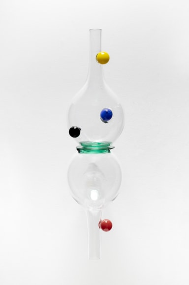 Iván Carmona’s ceramic and glass works exist in a long lineage of abstracted, modernist sculpture that taps into a deep well of nostalgia and indirect association. Inspired by Puerto Rican landscapes, Carmona sifts his own intimate memories through distinct shapes, colors, and textures to give a physicality to the immaterial. The resulting clay forms become universal in their utilitarian means of activating specific human emotion. Their formalist simplicity invites an untranslatable response, a wholly unique echo of the original feeling. Stark, vibrant color mixes with precariously suspended components, opening up a private, inscrutable language that shifts with each viewer.