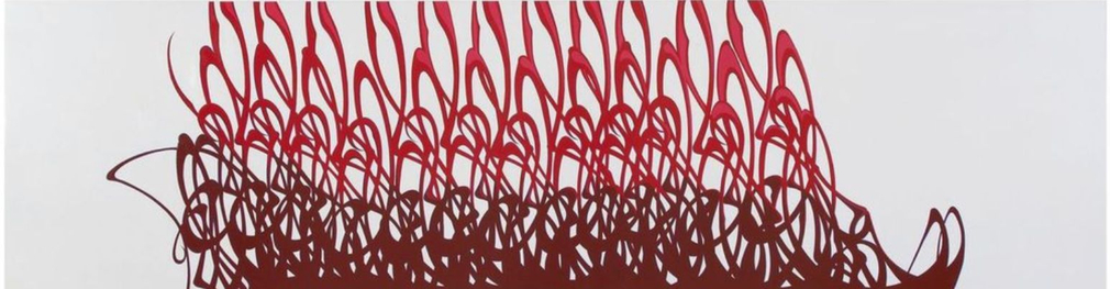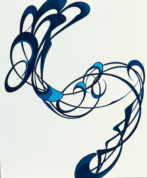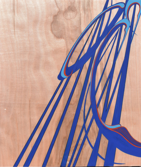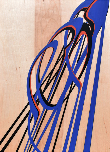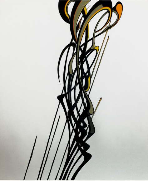 Lisa Stefanelli (American, born 1966) is a painter known for her work in hardline, linear abstraction. Her “Melee” series (1998-2015) is associated with her formative years as a competitive figure skater. Made of automotive paint on panel and using a multitude of visual references, the paintings represent a conversation around the artist’s view of our relationships. They display both grace and complexity in their entanglements, trajectories, and occasional estrangements, and attempt to resolve the struggle that they depict and embody. In the 2010s, Stefanelli began a digital practice centered around concepts from the natural world. This work suggests that all human actions have natural origins.