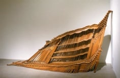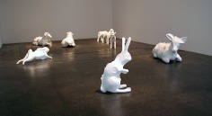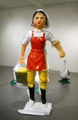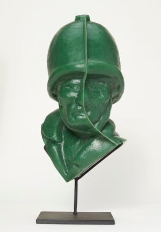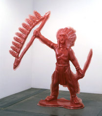 Yoram Wolberger uses childhood toys and everyday domestic items to create his large scale sculptures, foregrounding the latent symbolism and cultural paradigms of these objects that so subtly inform Western culture. By enlarging this ephemera to life size, Wolberger emphasizes the distortions of their original manufacture disallowing any real illusion and conceptually forcing the viewer to reconsider their meanings. When enlarged beyond any possibility of dismissal, we see that toy soldiers create lines between Us and Them, plastic cowboys and Indians marginalize and stereotype the Other, even wedding cake bride and groom figurines dictate our expected gender roles.