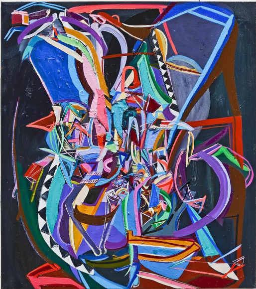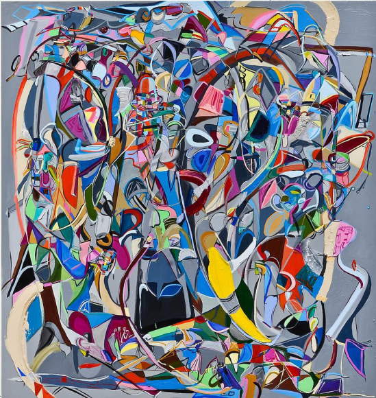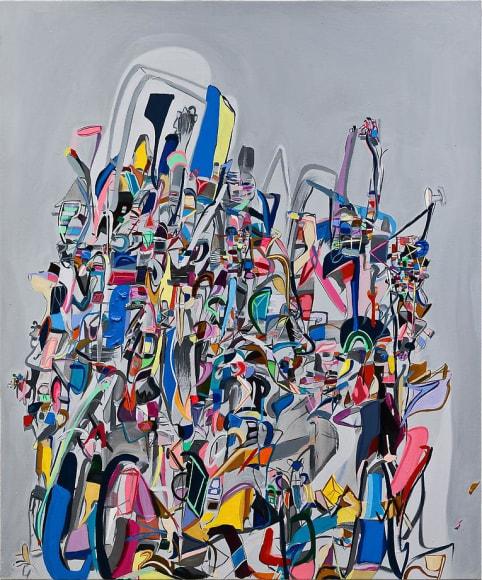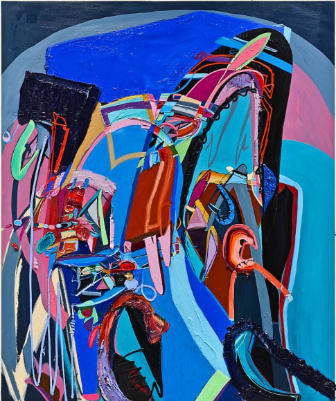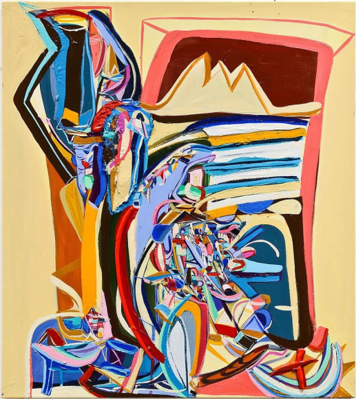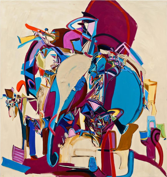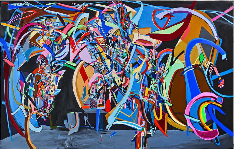 Historically, Smith's elaborate undulations at once recall the whimsy of Gaudi architecture, the romance of Baroque ornamentation, and the intricacy of Art Nouveau. In this new body of work, she allows her canvases to evolve and unfold over time – the compositions vying for space within kaleidoscopic dimensionality and inversion of planes. With her emblematic vibrant palette, she manipulates jarring angles, soft curves and intricate nooks to unearth abstract terrains and surreal forms. Oftentimes, the fragmented forms collide and layer against a deep space, forming puzzle-like composites of the paint's diverse malleability. Smith's inquisitiveness about awkward and unexpected beauty becomes manifest in richly hued steeples, veins, scales and tendrils of lavish paint, which converge into alluringly obscure and impetuous anatomies. Her simultaneously calculated and uninhibited investigation of equilibrium is parallel to that of her medium, and forges an optic tension that is both unsettling and seductive in its enigmatic composition.