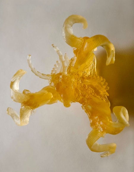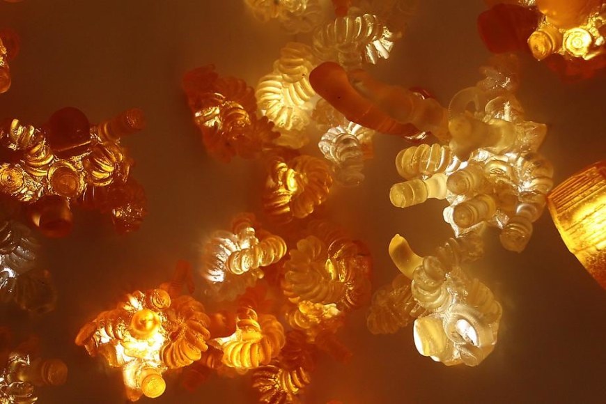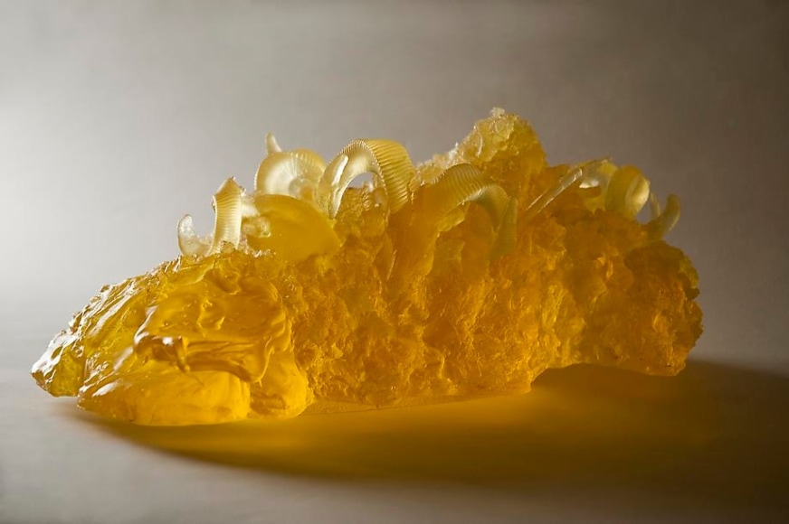 Mark Moore Gallery proudly presents "Tow Package," the first Los Angeles solo exhibition by sculpture and installation artist Debbie Long. Each sculptural work Long creates begins as a collection of found objects the artist amasses from her immediate environment. For this exhibition, these include cb radios, trailer hitches, and hood ornaments the artist gathers from the New Mexico desert, where she currently lives and works. Once a stockpile is accumulated, Long then recasts and reanimates the debris through translucent glass and meticulous lighting – a presentation that allows each piece to seemingly illuminate from within. The results are seemingly organic formations reminiscent of geodes, petrified amber, or stalagmites, but are instead relics of consumer culture due to their contemporary imagery.