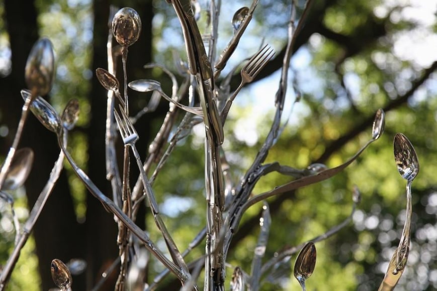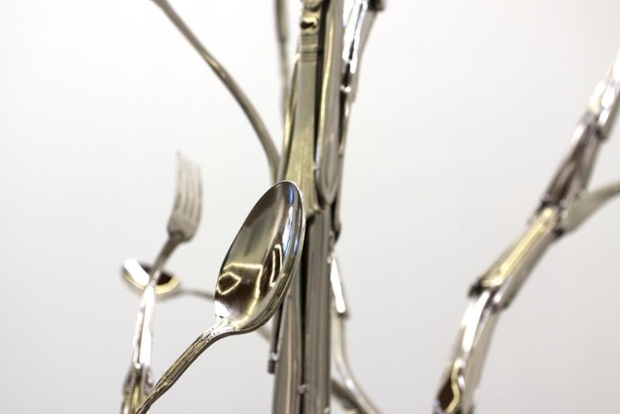 Grafted Settings (tree), 2015 / nickel plated flatware / 87 x 42 x 43 inches