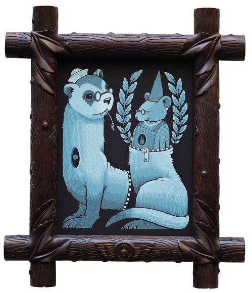 Mark Moore Gallery is proud to present "Hunting Trophies," an immersive installation and exhibition in Gallery Two of new work by interdisciplinary artist Jeremy Fish. Marking the artist's first solo exhibition with the gallery, this body of work showcases Fish's adept capacity to translate sociopolitical and autobiographical topics into allegorical narratives and imaginative spaces. Much like a raconteur divulging a tale, Fish renders characters and places that allude to a greater fable – but are recounted in whimsical language all his own.