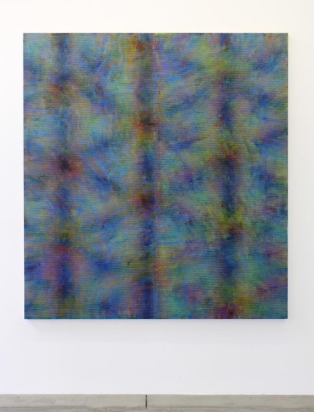 Mark Moore Gallery is pleased to present an exhibition of new paintings by Julie Oppermann. Coming from a background in neuroscience, Oppermann is primarily concerned with exposing the immaterial and subjective aspects of visual perception. By offsetting layers of similar patterns atop one another, she creates complex and stimulating compositions of moiré interference patterns that create intensely sensory experiences.