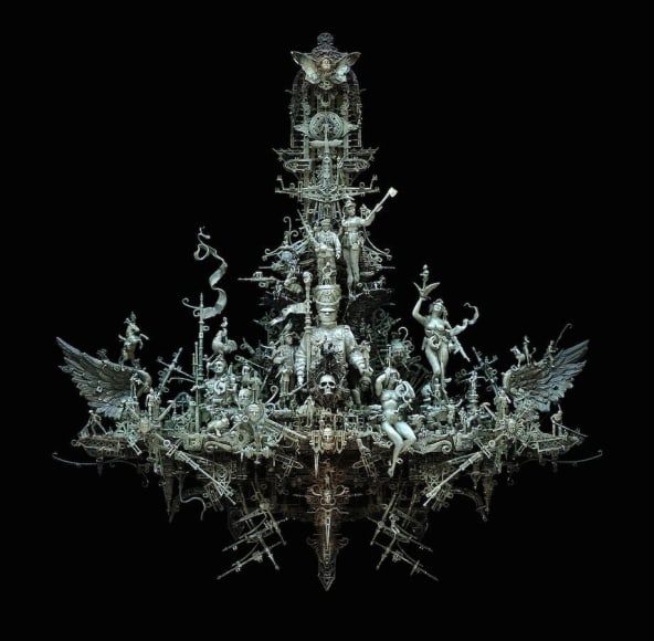 Born in 1973 in Springfield, Missouri, Kris Kuksi earned his BFA and MFA in painting at Fort Hays State University. He also studied internationally while enrolled in programs in Germany, Austria, and Italy. His work has been featured in over 100 exhibitions worldwide, including those at La Halle Satin Pierre Museum (Paris), Museum of the History of Science (Oxford), Williamsburg Art and Historial Society (New York), and the Smithsonian National Portrait Gallery (D.C.), as well as within numerous international art magazines and fictional book covers. Solo exhibitions of his work have been presented in New York, Los Angeles, Seattle, Basel, Toronto, Berlin, Washington D.C., and Kansas City. The artist lives and works in Lawrence, Kansas, and is also represented by Joshua Liner Gallery (NY).