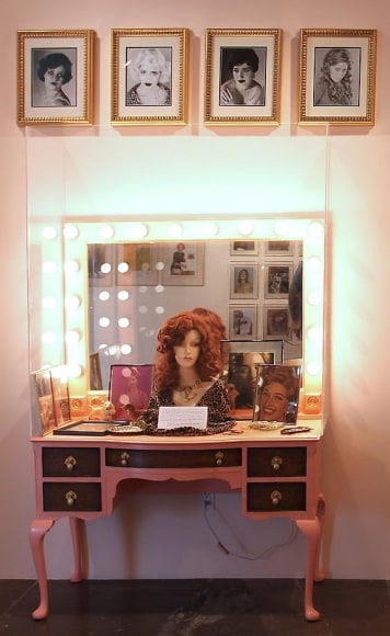 Through the development of comprehensive visual, written, and performative personae and story lines, Day archives and inhabits the professional and personal sagas of the Prescotts. This faux archive - which takes form in Day’s elaborate multiplayer performances and photographic staging - is reminiscent of the conceptual dramaturgy behind the work of Cindy Sherman and Eleanor Antin. The Prescott history is presented through the familiar, albeit peculiar, subjectivity of the film enthusiast. In the well-researched and reverent mode of the movie lover, Day crafts the “Prescott Pictures” annals to culminate in an immersive Hollywood Museum experience teeming with intricately crafted ephemera—such as headshots, magazine covers, advertisements, movie posters, hand-sewn costumes, and props. Spanning the rise and fall of Classical Hollywood, Day’s “Prescott Pictures” both reflects and intervenes in the manifold histories and myths related to studio and celebrity constructs. In developing the relationships and tensions between her characters, Day projects exaggerated caricatures of the figures we most revere, admonish, and disregard as we shape our collective pop-cultural narrative.