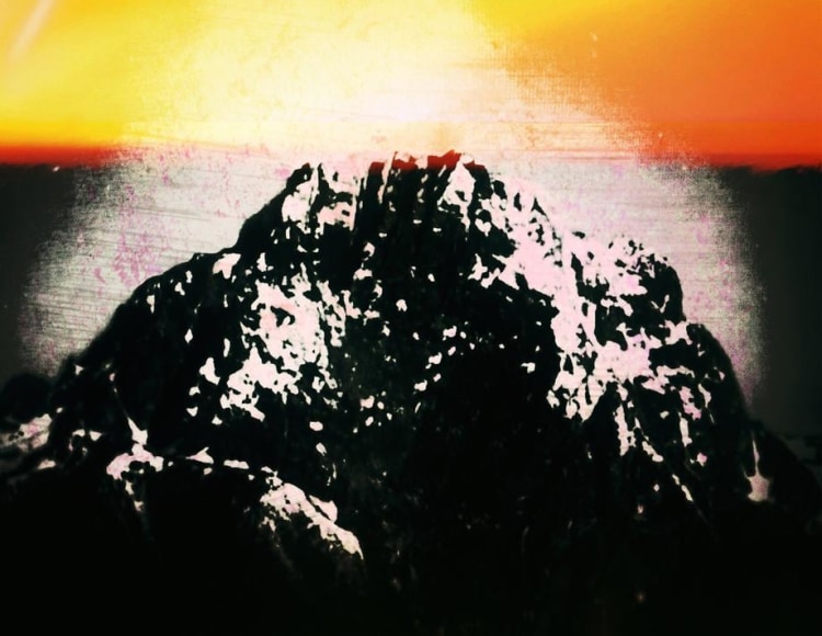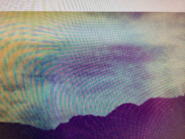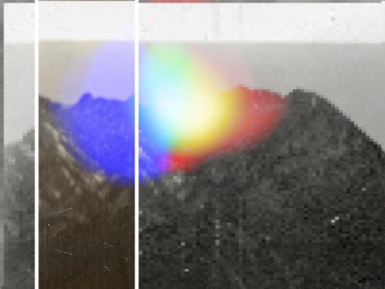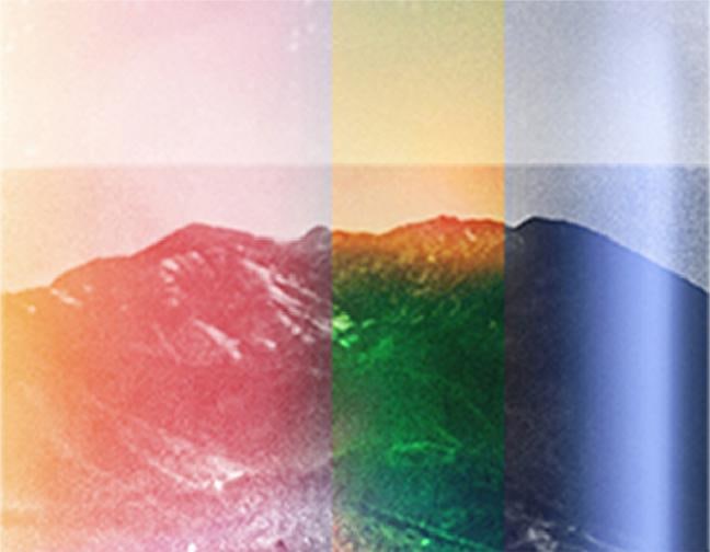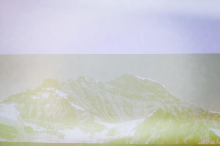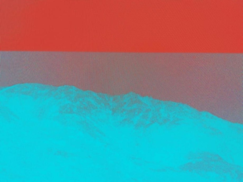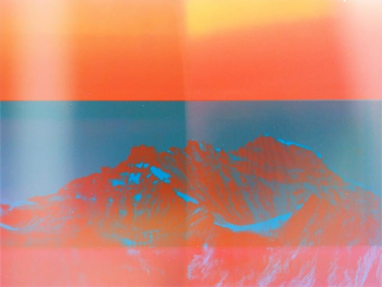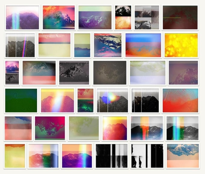 In these photographs, Umbrico allows the disorienting effects of the iPhone’s gravity sensor and the hallucinogenic effects of more than 500 camera app filters to break up, blend, distort, and de-stabilize the majestic peaks and summits that appear in the original photographs. In these images, photo grain, dot-screen, and screen resolution collide, creating undulating moiré patterns and pixilation that reference a viewing reality mediated through the digital screen. An overwhelming number of filters in these user-friendly smart-phone camera apps simulate the mistakes of analogue film photography. The light leak and chemical burn filters are especially absurd in the context of the smart-phone, where the impossibility of holes, gaps, dark volume or liquid necessary to produce these effects, stands in direct opposition to the apparatus simulating them. Umbrico processes a single mountain image though every “light leak” filter she can find for her video, "Mountains, Moving: Light Leaks and Chemical Burns (time lapse)." If light is the first and foremost element of analogue photography, here digital algorithm renders nostalgically fetishized synthetic light to reference clichés of the spiritual light of enlightenment.