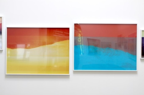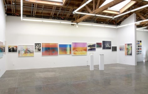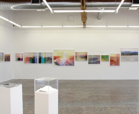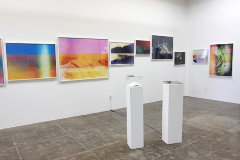 Mark Moore Gallery proudly presents Penelope Umbrico’s inaugural exhibition with the gallery, "Mountains, Moving: Light Leaks, and Chemical Burns." Umbrico began this project as an exploration of an analog history of photography within the digital torrent that is its current technological manifestation. She chose the subject of the mountain as represented within Aperture’s Masters of Photography series, in order to contrast these two most singular and stable subjects (the master and the mountain) with the instability and ubiquity of current photographic practices. To this end, Umbrico downloaded the most popular smart-phone camera apps to her iPhone and used them to re-photograph the images of mountains in these books, as well as representations of mountains from other canonical photographs in books and online.