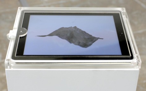 In "Master Copy (Mount Moran)," Umbrico takes one of the images of a mountain in the exhibition as a starting point in her collaboration with Thomas Storey, who’s work for this project explores Google Earth’s agenda of translating satellite photographs of the earth’s surface into the tiled texture-mapped model we’ve come to know as earth online. In this collaboration, Storey extracted the Google Earth data for the geo-location of Ansel Adams’ photograph, The Tetons and Snake River, to create a 3D model of Mount Moran pictured in it. Here, the ancient stable form of the mountain, first captured as a singular monument in a photograph (a process which begins with natural light), moves in multiple iterations through infinitely reproducible and distributable code on the web (the manufactured light of pixel and 3D model), to end with the image of Mount Moran on Google Earth as an independent object through the 3D printing of its associated image data. Umbrico and Storey suggest an equivalency here - if the individual photographers were once the masters of how we viewed the natural world, for better or for worse, we now view the world through a master Google lens. Taken from monumental earth through digital code, the mountain ends in reconstituted earth again - a small ceramic specter of a mountain.