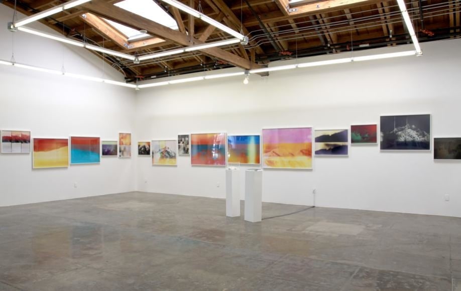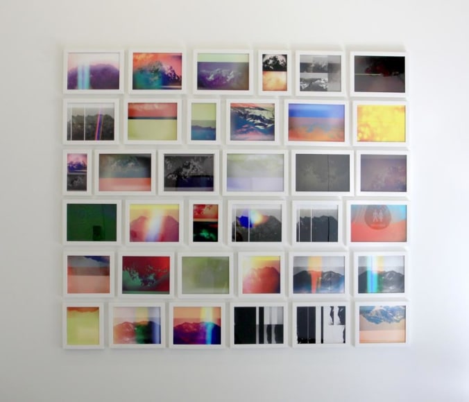 Mark Moore Gallery proudly presents Penelope Umbrico’s inaugural exhibition with the gallery, "Mountains, Moving: Light Leaks, and Chemical Burns." Umbrico began this project as an exploration of an analog history of photography within the digital torrent that is its current technological manifestation. She chose the subject of the mountain as represented within Aperture’s Masters of Photography series, in order to contrast these two most singular and stable subjects (the master and the mountain) with the instability and ubiquity of current photographic practices. To this end, Umbrico downloaded the most popular smart-phone camera apps to her iPhone and used them to re-photograph the images of mountains in these books, as well as representations of mountains from other canonical photographs in books and online.