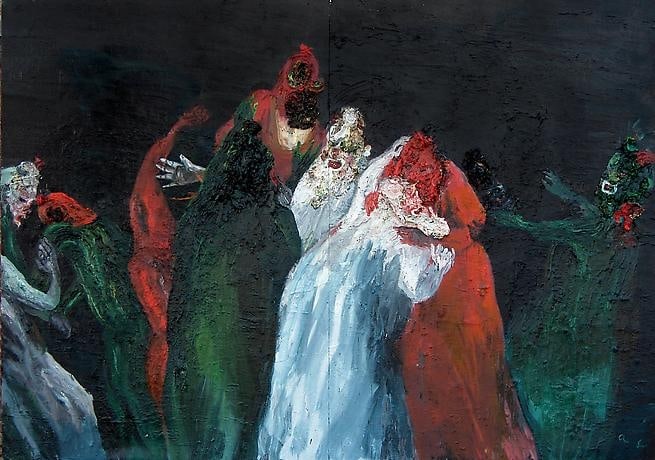 Allison Schulnik uses painting, ceramics, and hand-made, traditional animation to choreograph her subjects in compositions that embody a spirit of the macabre, a Shakespearean comedy/tragedy of love, death, and farce. Her works were compared to "the comic-grotesque visionary James Ensor" by The New York Times.