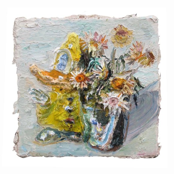 Allison Schulnik / Rainy Day Duck Flowers #1, 2015 / oil on canvas stretched over board / 12 x 12 inches