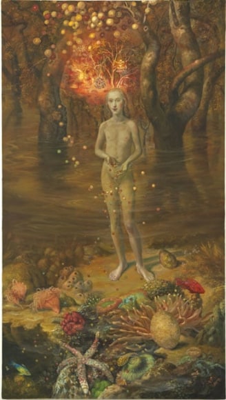 Self Portrait in a Coral Bed, 2011 / oil on canvas / 88 x 45 inches