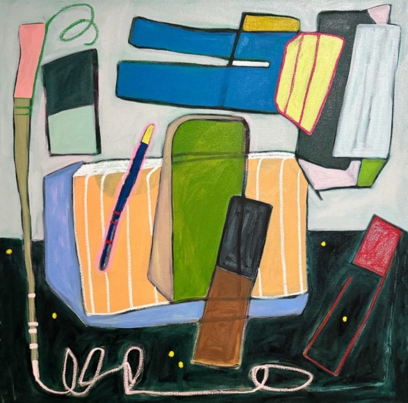 Rebekah Andrade's work explores the language of painting by way of expressionism, geometric abstraction, hard-edge painting, and pattern. Her process draws from past work, personal references, familiar forms, objects, textures, and symbols. This structured methodology is transmitted through selected colors of layered paint, collage, and mixed media techniques, always leaving traces of the process visible. Her intention with the work is to investigate and work through questions surrounding the history of representation, limits of perception, aesthetics, status, and reproduction of images, thus providing her insight and clarity into our contemporary visual culture and communicational trends.