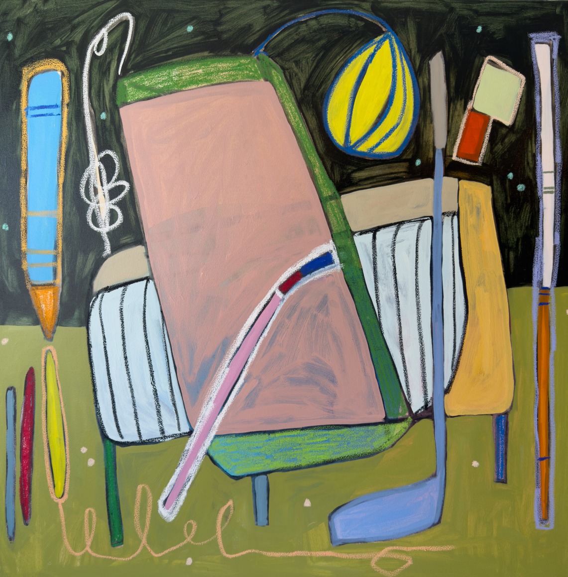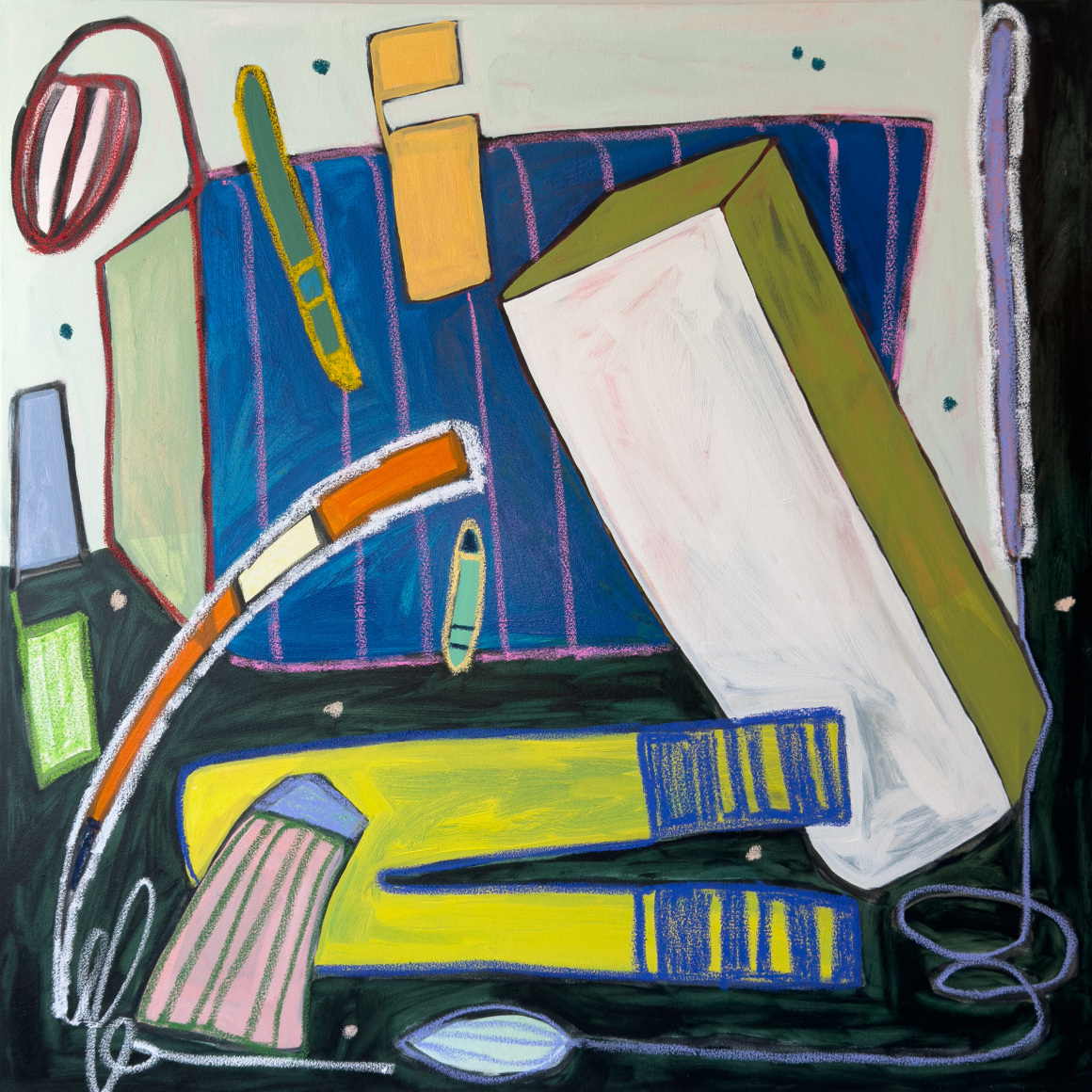 Oil, acrylic, and oil stick on canvas