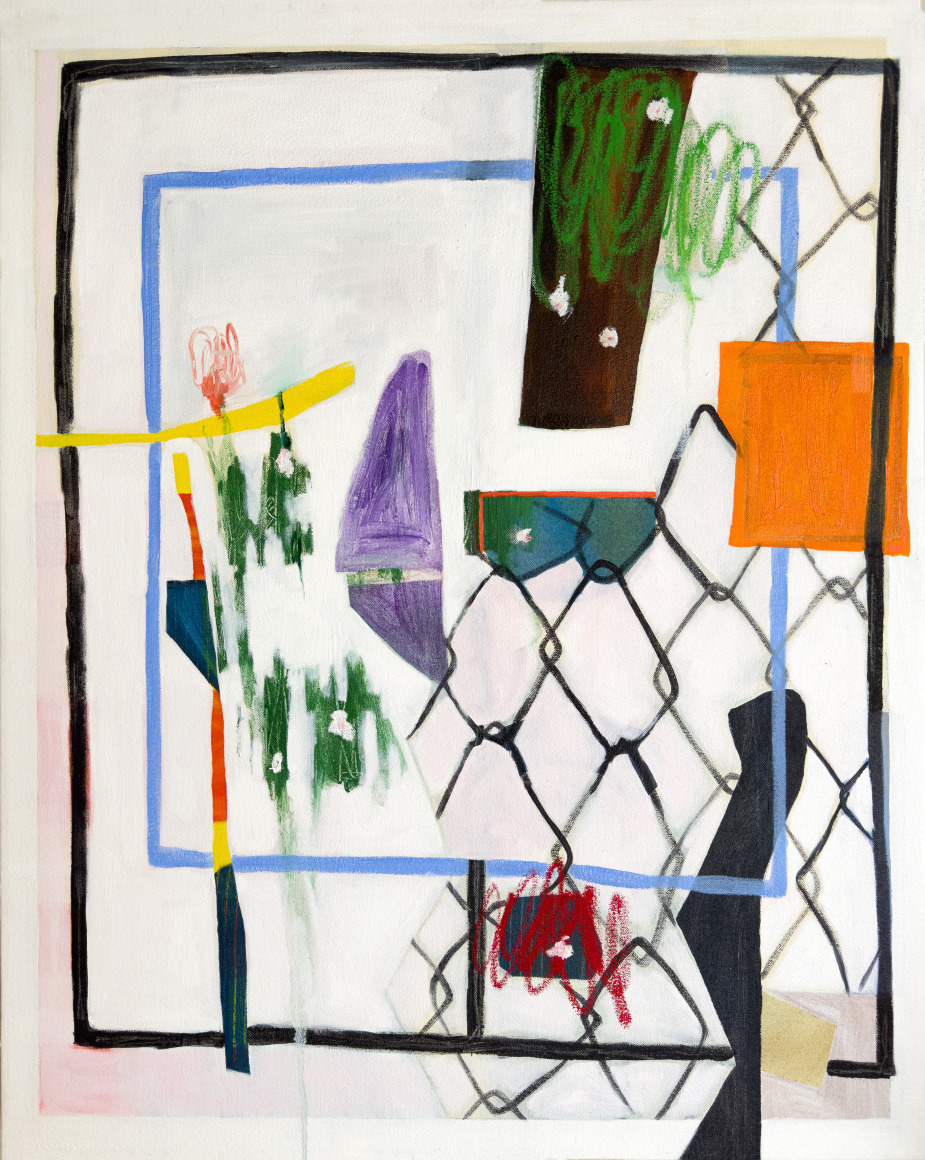 Oil, acrylic, tissue paper, and oil pastel on canvas