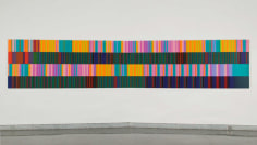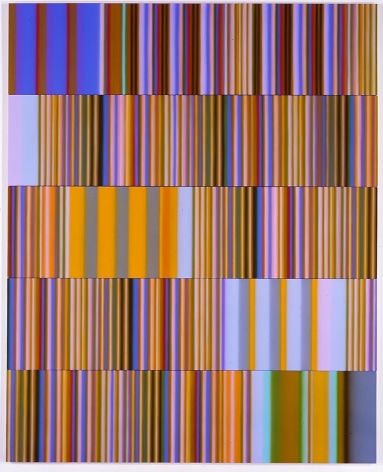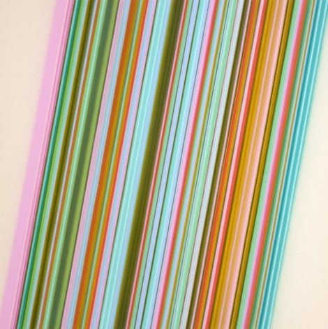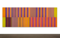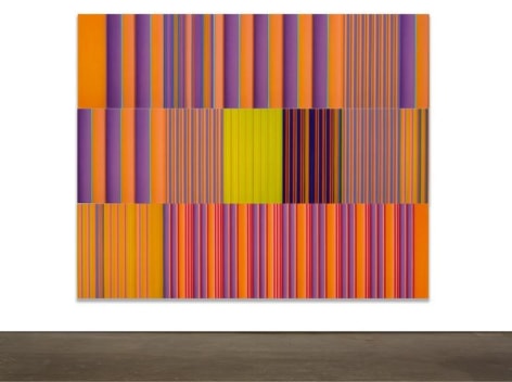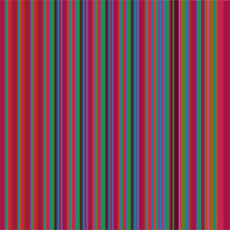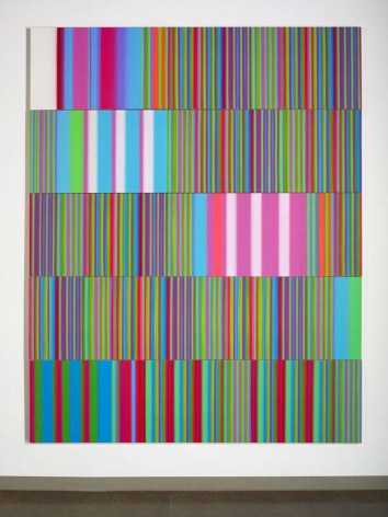 Music is the genesis of Tim Bavington's paintings. Through synthetic polymer paint, Bavington acts as a translator between the aural and the visual as he transforms guitar solos, melodies and bass lines into vertical bands of color. Tracks from bands such as The Beatles, The Jam, Oasis, and The Rolling Stones become vibrant bands of color, and bridge compositional concepts between seemingly unlike disciplines. Although Bavington has a method that designates sound to color and composition, the paintings are not literal translations; they remain open to intuition and decision-making, allowing for a distinct artistic presence.
