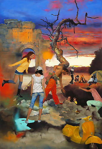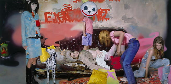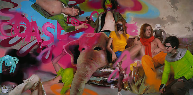 In an age of appropriation, Asgar/Gabriel acknowledge numerous Art Historical influences. Elements of painting - from Baroque to Pop Art to Abstraction - are all absorbed and reassembled to create worlds where reality and virtuality interplay. Just as their youthful subjects set themselves adrift within this fragmentary, shifting landscape, the viewer happily succumbs to the sensory overload.