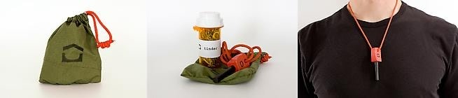 RECESS Fire-Starting Kit, 2010 / flint, US currency tinder, custom sack