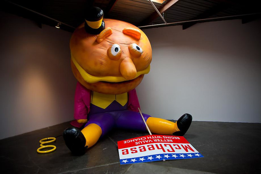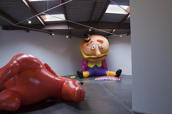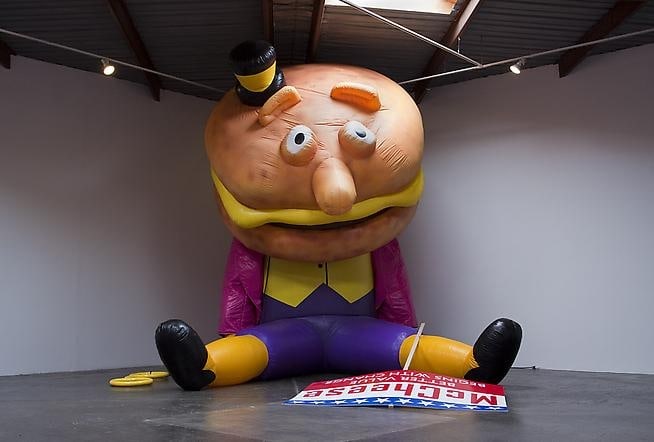 The Mayor Rests, 2008 / vinyl, steel, mixed media, electronics / 13 x 9 feet diameter