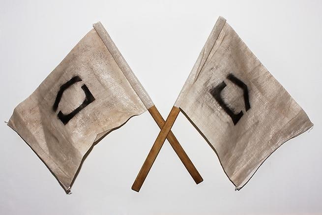 RECESS Signal Flags, 2010 / nylon, wood, spray paint / 23 x .5 x 32 inches (each)