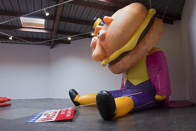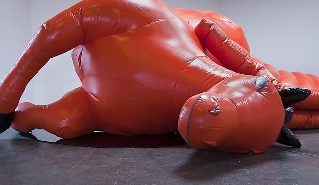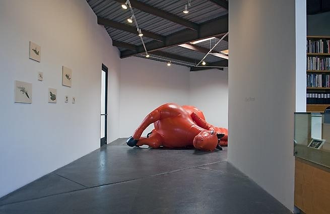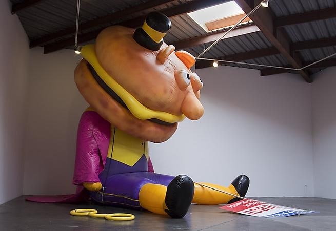 In his newest body of work, Person utilizes his trademark fascination with the confluence of economy and societal power structures through innovative installation, sculpture and performance. "Surviving the End of Your World" will feature several collages from the artist's "TaxCut" series, and the debut of "Thirst" – a fifteen-foot inflatable sculpture depicting the Mobil Oil Pegasus lying in a glossy black acrylic pool of its own crude. Person's use of iconographic signifiers related to American capitalism and consumerism are juxtaposed with notions of sheer Darwinist survival featured in his "RECESS" project, which will be featured in the gallery's Project Room. In addition to a live video feed of the artist's performance in his selfmade "apocalypse bunker" in Albuquerque, New Mexico, "RECESS" includes functioning installation works to spotlight cultural intervention, critique of corporate enterprise and the myth of self-reliance in the face of essential conservation.