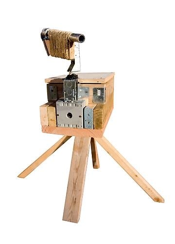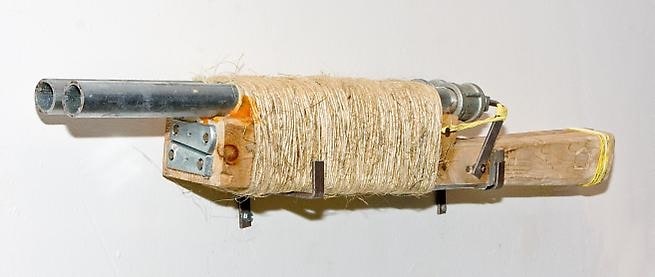 wood, steel, twine, household implements and custom electronics / 38.5 x 22 x 40 inches
