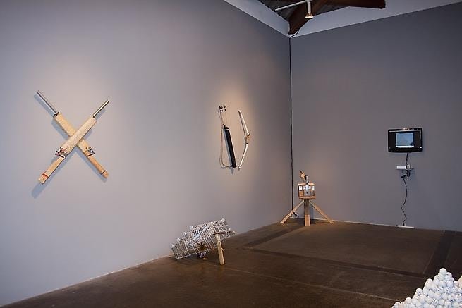 Two Arms, 2010 / wood, steel pipe and fittings, glue and twine / 42 x 1 x 4 inches each