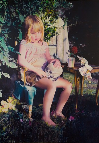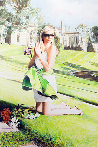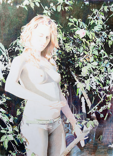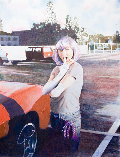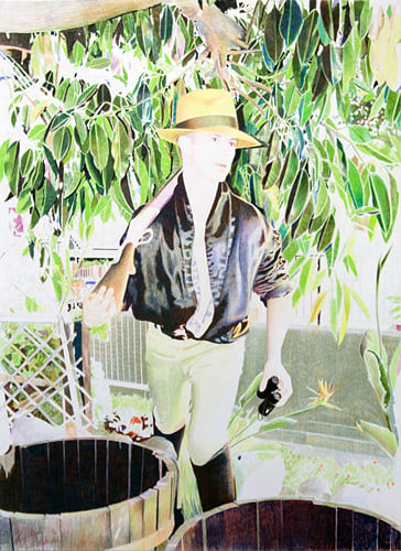 Mark Moore Gallery is pleased to announce new paintings and drawings from acclaimed young artist Christoph Schmidberger. Schmidberger’s brand of hyperrealism depicts a reality that is far more lurid and intense than the world we inhabit ever could be, a world rendered sinister through its very perfection. His subjects are often displayed in a state of undress, simultaneously exposed and flaunting themselves; as spectators we are never quite sure if we are witnessing something we should not. These youthful bodies often stare out at us as they lounge in the canvas, their coy, languid gaze at once inviting and abject, both alluring and disconcerting. At times the disquieting element is blatantly depicted in the scene, but more often than not, it emerges as a feeling, an instinct, as if Schmidberger has caught the moment just before any imperfection is revealed. The effect almost causes the viewer /voyeur to avert their eyes; as if they might see something they don’t want to, forever ruining the illusion of Schmidberger’s irresistible and seductive world.