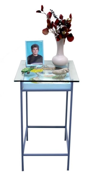 What A Wonderful Life, 2014 / mixed media assemblage on powder coated pedestal / 44.5 x 24 x 17 inches