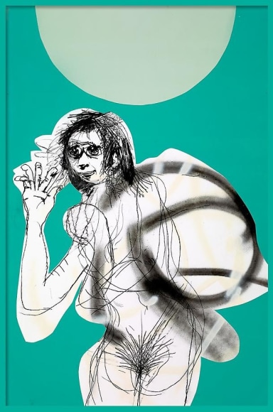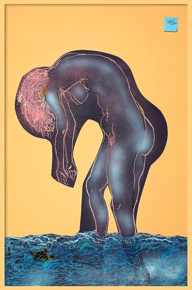Bather with Turtle, 2014 / mixed media on paper / 35.5 x 23.5 inches