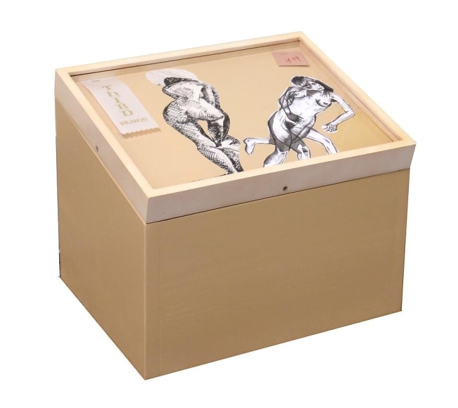 Hailed as a thrifting mecca for several decades, Sun Thrift Store in Sunland (CA) draws its share of both unusual characters and the commonplace man - all partaking in the hunt for trash-turned-treasured objects. For this exhibition, the brothers appropriate not only the trinkets and discarded paintings retrieved from the business, but also the handmade signage, categorical displays, and shopper behavior. Unlike the polished and elaborate paintings that the brothers are known for, anonymous figures are drawn with stark immediacy – personalities that correspond with a series of projected candid photographs of perusing customers and muted wall spaces. Acting as flâneurs or urban observers, the brothers investigate both the construct of “thrifting culture” as well as the members that form this unique microcosm of consumption. Taken as a whole, the exhibition draws upon the subject matter of the everyday as a window into contemporary Americana. Through a nonpartisan lens, "Open to the Public" explicates the people’s narrative as a universal struggle to create, cherish and ultimately abandon.