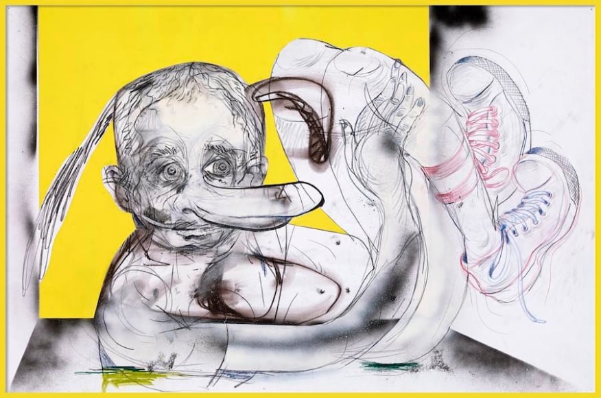 This Is Not A Man With A Pipe, 2014 / mixed media on paper / 19.5 x 24.5 inches