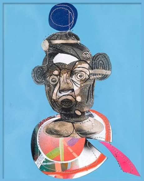 Attention Sun Thrifters (Blue), 2014 / mixed media on paper / 15 x 12 inches