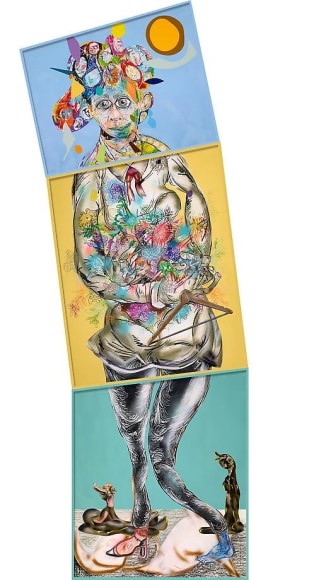 My Little Darling, 2014 / mixed media assemblage with mixed media on canvas / 44 x 16 x 20 inches