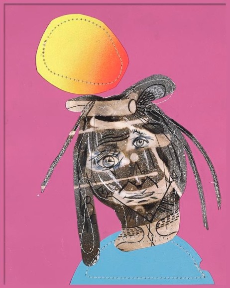 Attention Sun Thrifters (Pink), 2014 / mixed media on paper / 15 x 12 inches