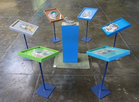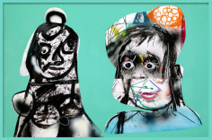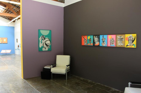 Hailed as a thrifting mecca for several decades, Sun Thrift Store in Sunland (CA) draws its share of both unusual characters and the commonplace man - all partaking in the hunt for trash-turned-treasured objects. For this exhibition, the brothers appropriate not only the trinkets and discarded paintings retrieved from the business, but also the handmade signage, categorical displays, and shopper behavior. Unlike the polished and elaborate paintings that the brothers are known for, anonymous figures are drawn with stark immediacy – personalities that correspond with a series of projected candid photographs of perusing customers and muted wall spaces. Acting as flâneurs or urban observers, the brothers investigate both the construct of “thrifting culture” as well as the members that form this unique microcosm of consumption. Taken as a whole, the exhibition draws upon the subject matter of the everyday as a window into contemporary Americana. Through a nonpartisan lens, "Open to the Public" explicates the people’s narrative as a universal struggle to create, cherish and ultimately abandon.