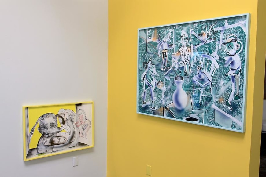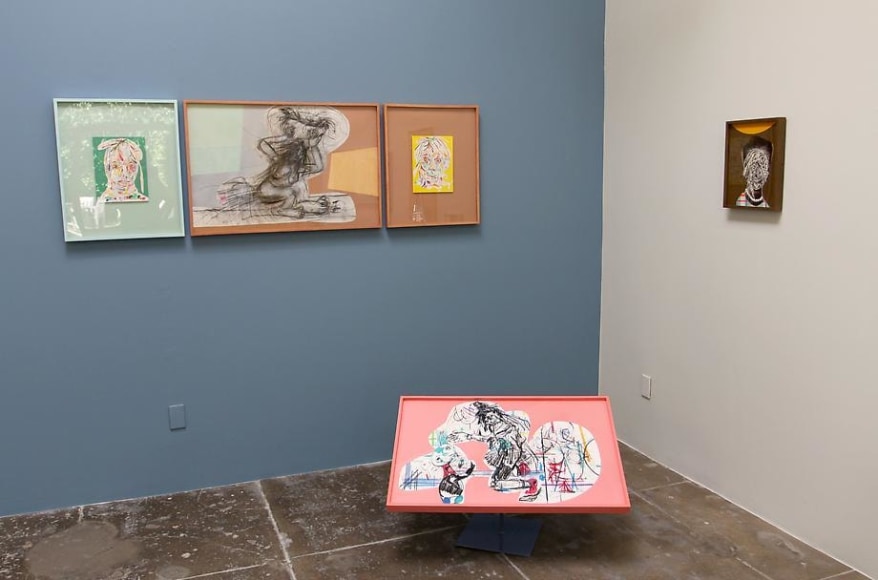 Mark Moore Gallery proudly presents "Open to the Public,” an expansive exhibition of mixed-media drawings, assemblage, photography, video, and installations by the Clayton Brothers. Consisting of brothers Rob and Christian Clayton, the duo examines the mythos, culture, and visual language of an archetypal second-hand store located near their studio. Drawing from their observations of the venue and its visitors, the brothers entwine their independent approaches, styles, and palettes into works that operate as co-authored epics – which are rife with reoccurring motifs, gestures, and figures. The end result is a drama of shared experiences that fuse the concept of self with that of the communal, both in subject matter and practice.