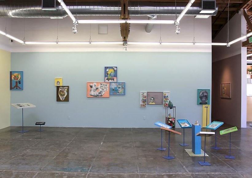 Hailed as a thrifting mecca for several decades, Sun Thrift Store in Sunland (CA) draws its share of both unusual characters and the commonplace man - all partaking in the hunt for trash-turned-treasured objects. For this exhibition, the brothers appropriate not only the trinkets and discarded paintings retrieved from the business, but also the handmade signage, categorical displays, and shopper behavior. Unlike the polished and elaborate paintings that the brothers are known for, anonymous figures are drawn with stark immediacy – personalities that correspond with a series of projected candid photographs of perusing customers and muted wall spaces. Acting as flâneurs or urban observers, the brothers investigate both the construct of “thrifting culture” as well as the members that form this unique microcosm of consumption. Taken as a whole, the exhibition draws upon the subject matter of the everyday as a window into contemporary Americana. Through a nonpartisan lens, "Open to the Public" explicates the people’s narrative as a universal struggle to create, cherish and ultimately abandon.