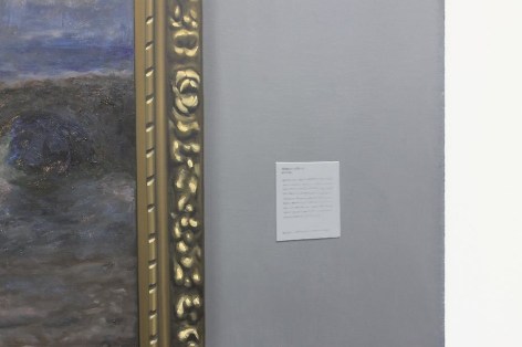 According to Plato’s concept of forms, the world that we know through our senses often deceives us by way of subjective images. Klamen’s multi-canvas installation, “Meta-Paintings” (2013), elaborates on this concept by presenting well-known works of art in a re-contextualized space, highlighting the deception of each image through masterful illusion and imagination. In these twenty-five smaller paintings, Klamen presents an installation that playfully mimics a salon style hanging. The diagonal slopes created by the various slanting paintings suggest a cubist bas-relief that compresses art historical time periods and physical space. As is the case with nearly all of his paintings, each iconic artwork (as well as its frame, and oftentimes wall label) is meticulously rendered as a representation of a representation, moving further and further from its archetypal form—pointing to a distortion of reality already present in the original image. To further complicate the simulacrum, Klamen plays with the viewer’s perception by drastically altering the perspective of the painting, tilting the work at an oblique angle within his own canvas. In his “remixes,” Klamen manipulates images from the art historical canon by warping then into optical oscillations full of contingencies and surprises. The psychedelic result suggests a disoriented ocular state that hints at the malleable nature of our reality—a reality that relies heavily on the conviction of our individual experiences.