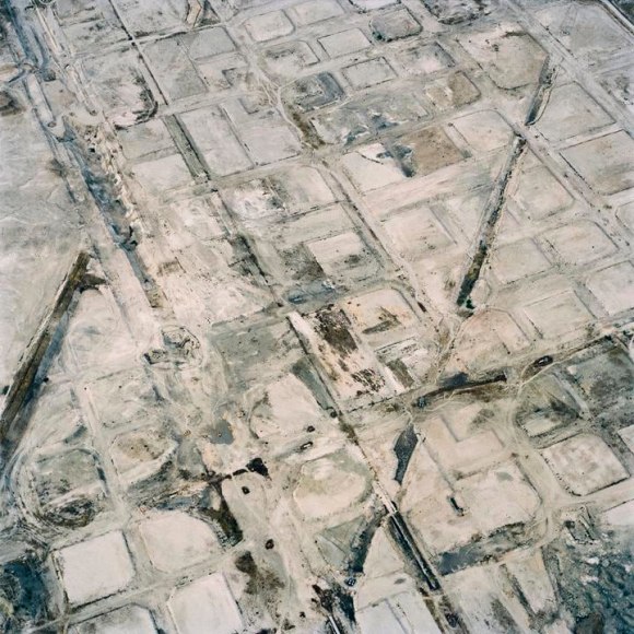 Maisel was commissioned to photograph the city of Toledo, Spain, for ToledoContemporánea, an exhibition created to commemorate the 400th anniversary of the death of the painter El Greco. The Fall is Maisel’s personal response to the landscape between Toledo and Madrid, in which he reveals topographies that have been aesthetically deranged and environmentally impacted by industrial use. From abandoned construction sites in Vicalvaro, ashen extraction zones in Borox, and crosshatched fields in Fuensalida, Maisel constructs a hallucinatory and alien worldview. Speaking to this, the artist says, “The baser the terrain, the more susceptible it is to contemplation, and the more complex it becomes as subject matter; I consider my pictures not as simply documents of these blighted regions, but as poetic renderings that reflect the human psyche that made them.” Maisel’s painterly abstractions in The Fall reference a variety of sources, from the landscapes of Richard Diebenkorn to the lunar renderings of NASA.