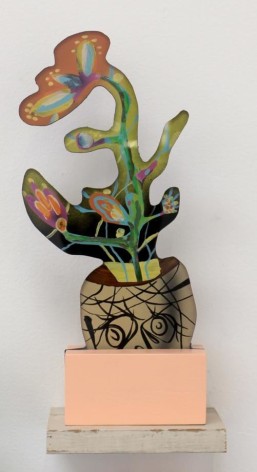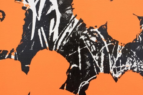 Others have taken a looser thematic direction, addressing the state of the art world in a less conventional manner. For instance, Ben Weiner's Orange Flowers do not contain any recognizable imagery, but were created by soaking paper in a mixture of orange ink and opium, a drug famously derived from poppies (the flower depicted in Warhol's flower series). Long-time gallery artist Vernon Fisher takes a similarly abstruse approach, presenting an uncharacteristically small work, APrIL, which entreats the viewer to contemplate T.S. Eliot's notion of springtime as it relates to mortality. Similarly, Andrew Schoultz's geometric iconography illustrates his trademark concerns about imperialist and globalized realities – but now as they relate to the art market - while Christopher Russell's sublimely clement, hand-scratched photographs reveal a purity only found in authentic, natural experiences in nature. In Bloom uncovers a through-line between artists with disparate practices and preoccupations, prompting a larger "art world" dialogue that is truly Warholian.