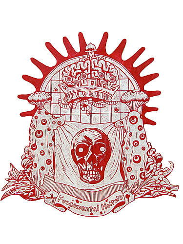 By working directly from enlarged initial sketches, Yokono's work retains an energy and freshness that, somewhat paradoxically given it's content, transform his works into attractive and appealing objects, despite their grim overtones. Then again, perhaps the viewer relishes this dark and gory folly and, rather than being overly distracted by their unexpected beauty, welcomes an opportunity to indulge the morbid side of human nature.