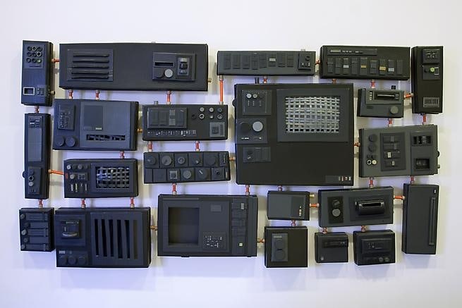 Pine ply, steel, aluminum, inkjet on paper, chipboard