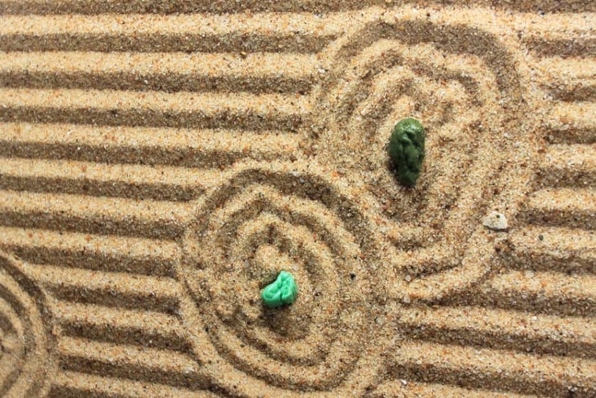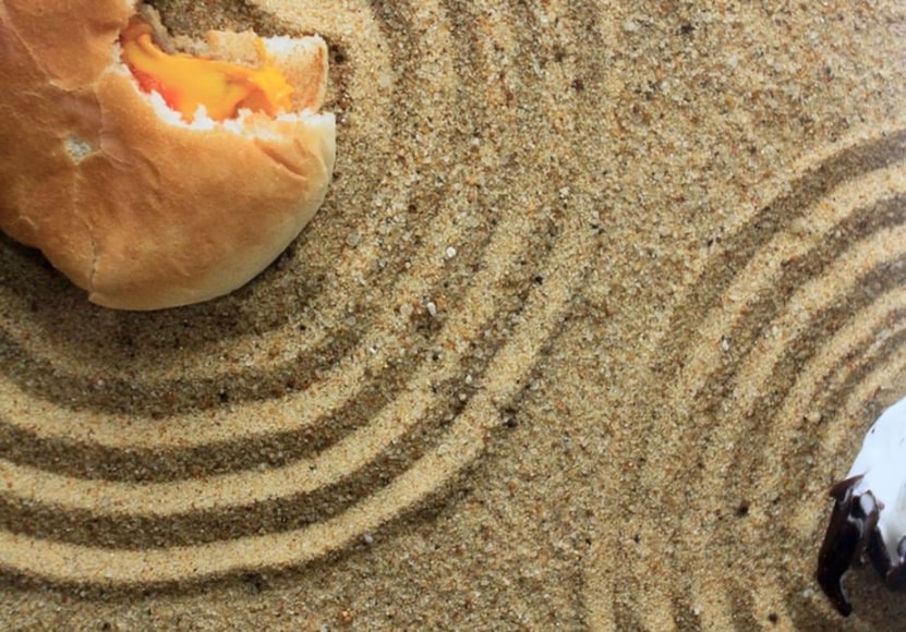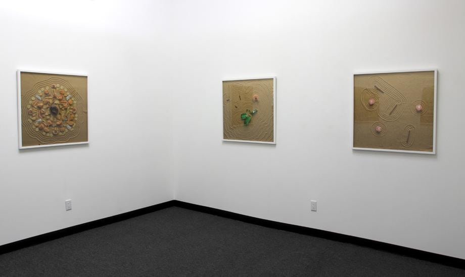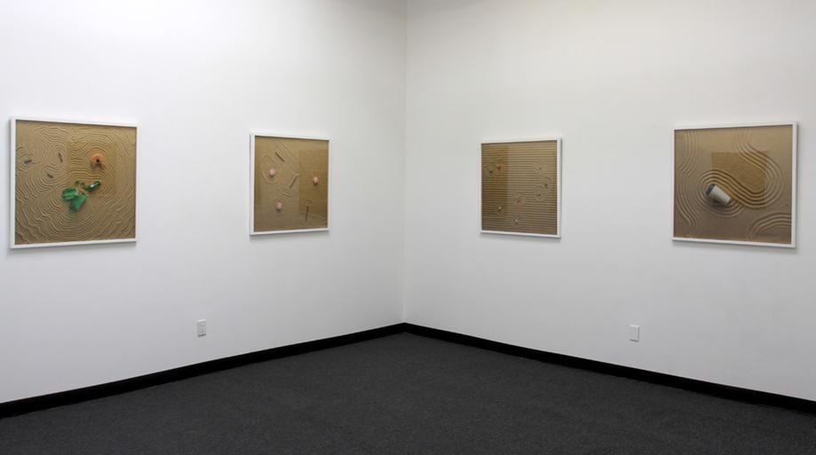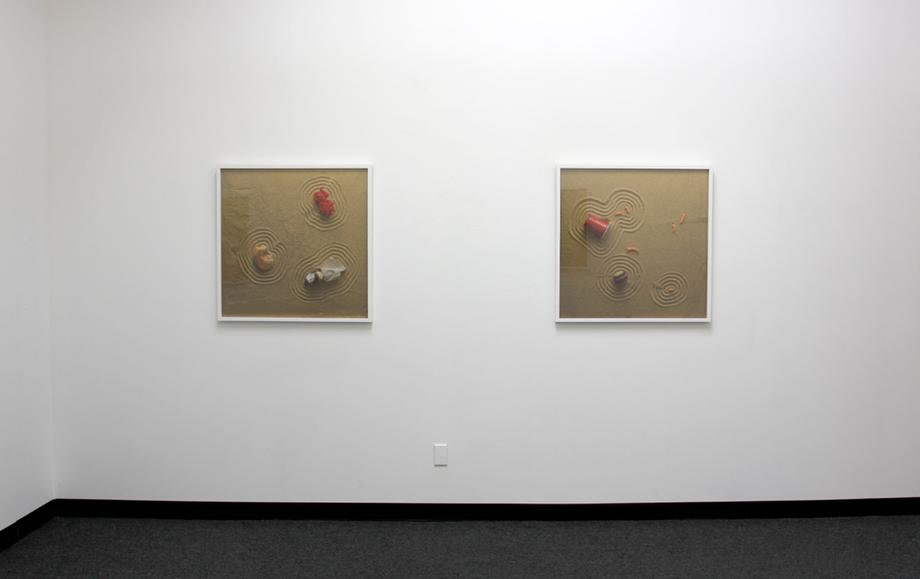 In "Staycation," the group plays on the iconography of the Zen Garden, as seen through the eyes of western popular culture. Creating a purposely-mediated experience of “Zen,” the installation poses as a pre-packaged version of what could have been a meaningful experience, if the consumer had bothered to leave the house. Like the screensaver images of peaceful monuments floating across a laptop, the imagery plays on a desire for escape, but also immediacy—one desire ruling out the other. The result is a razor sharp wit interpretation of a very American mixture of banality and good intentions -- an eagerness for a respite from the mundane, without the will to see it through.
