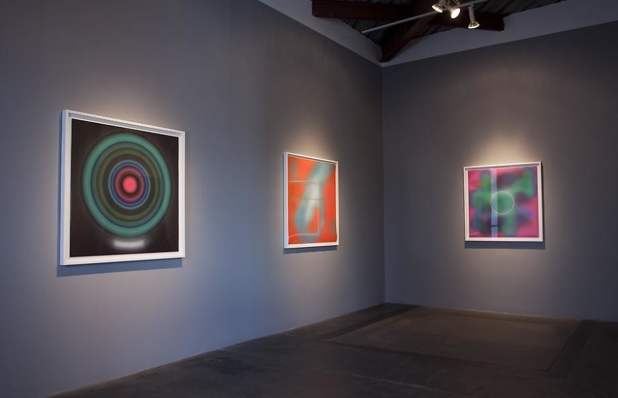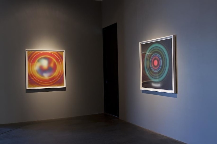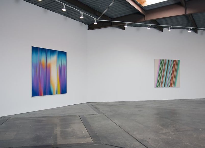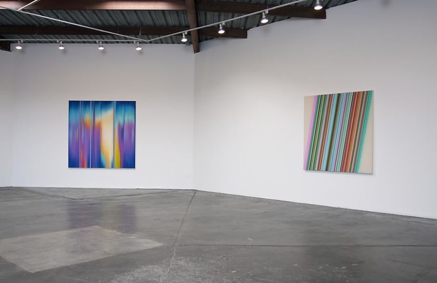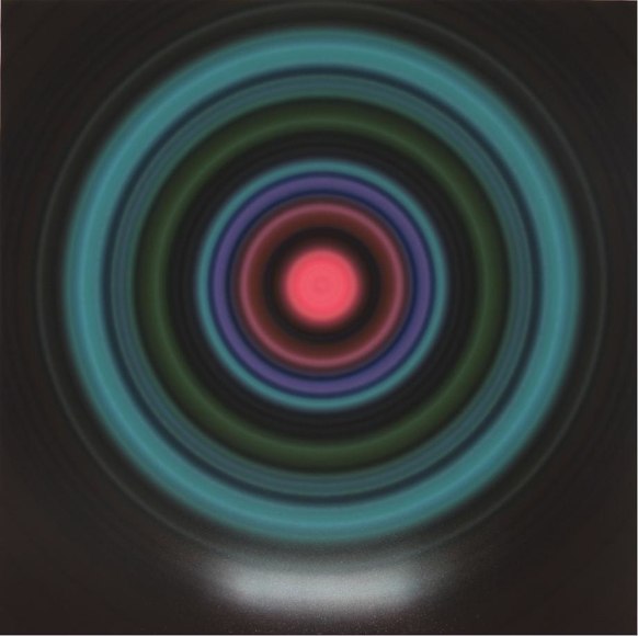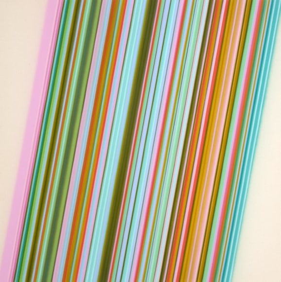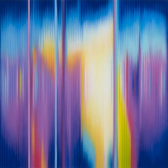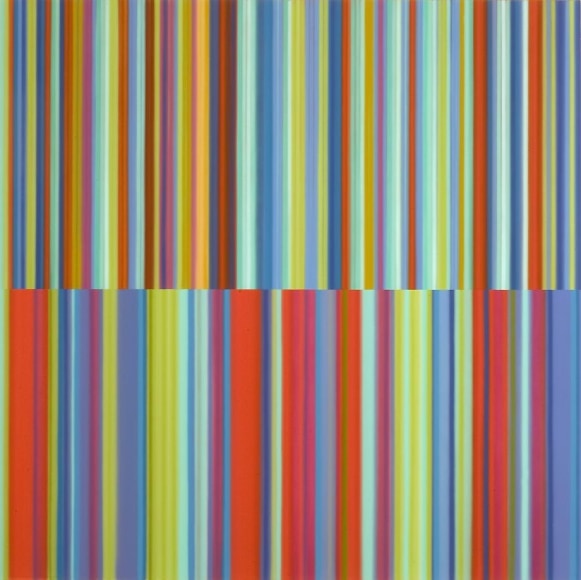 Utilizing pop and rock music as his source material, Bavington acts as a translator between the aural and visual. Guitar solos of the Rolling Stones, Elvis and Oasis become vibrant bands of color – a bold palette influenced by his longtime Las Vegas residence – as they bridge compositional concepts between seemingly disparate fields. Now experimenting with album cover motifs, Bavington exercises his adept employment of duality in homage to his influences in both music and art. While he generates tributes to the guitar gods and vinyl luminaries of his record collection, Bavington simultaneously "covers" the heavy-hitters of contemporary painting by converting popular album covers of decades past into paeans to the color-field paintings of the 50s and 60s: "Give 'Em Enough Rope" by the Clash becomes a hazy tribute to Mark Rothko while "Blue Monday" by New Order is a gleaming rendition of Kenneth Noland's concentric circles.