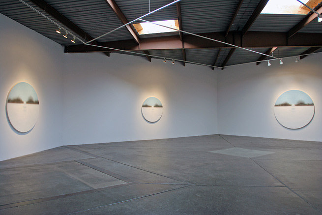 In this series of work, Hebert uses his signature airbrush technique to juxtapose bubbles and snowmen in contrasting planes of perspective. He positions these precisely formed characters in unpopulated backyards that are “too strangely lit, too moody and impossible, to reflect the real world,” as Jessica Hough from the Aldrich Museum muses, “we naturally want to bring the image into sharp focus so that we can see all of what we think is there. But then we realize that the beauty and appeal of the paintings is in part due to this gossamer fog that cloaks the landscape.”