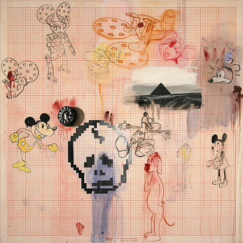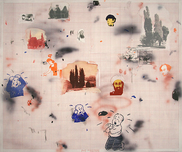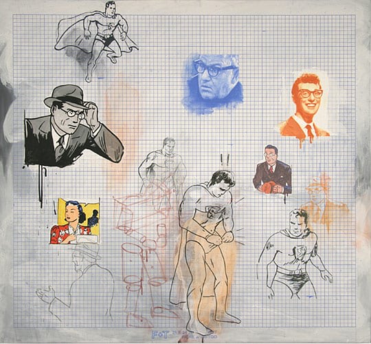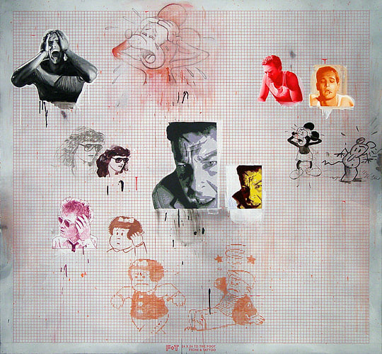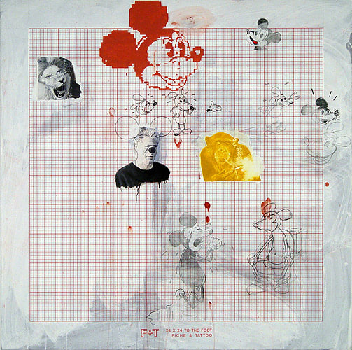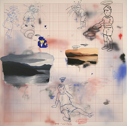 Addressing the everyday business of living, Fisher’s multi-media paintings engage with a narrative conceptualism which when placed over a deliberately misleading grid system imply that the intent is an informational attempt to solidify meaning. Fisher of course, positively dismisses this possibility via the fluid and interconnected juxtapositions of images and text, which undermine static and singular readings. A mixture of factualities, personal reflection and prognostication, memories and ruminations, which face the problem of navigating meaning in the world, often with a self-depreciating humor, Fisher's constant invention keep one's attention locked into the complex dialogue that intrigues him too.